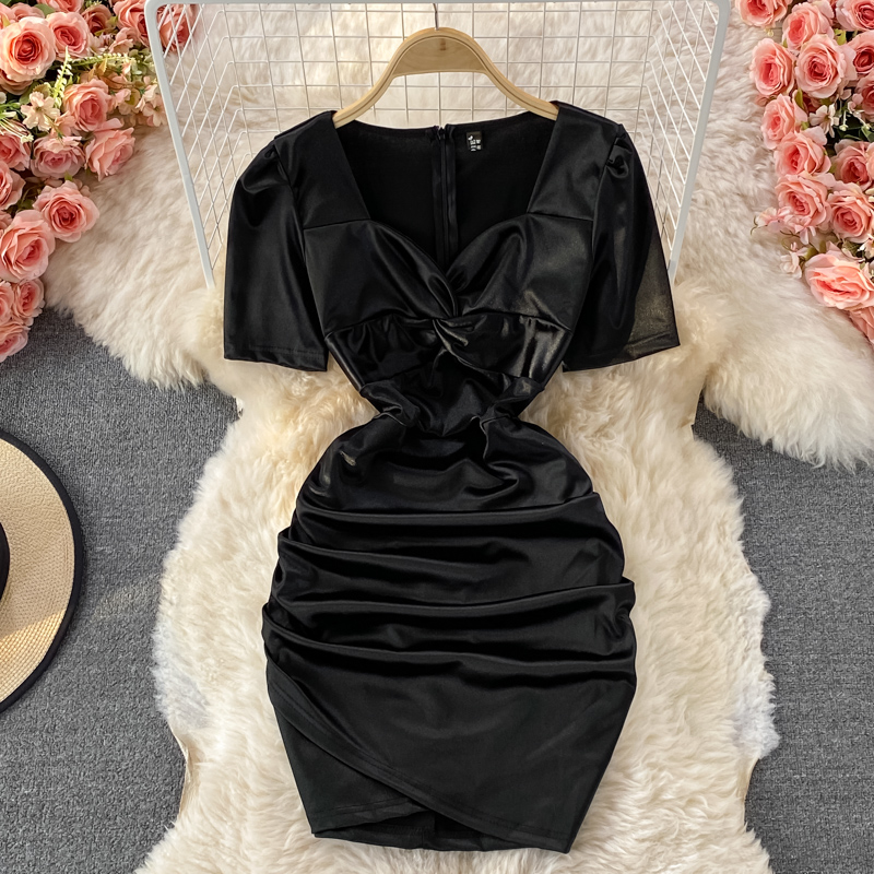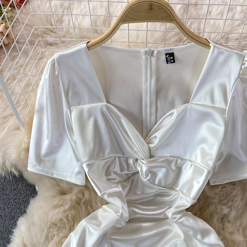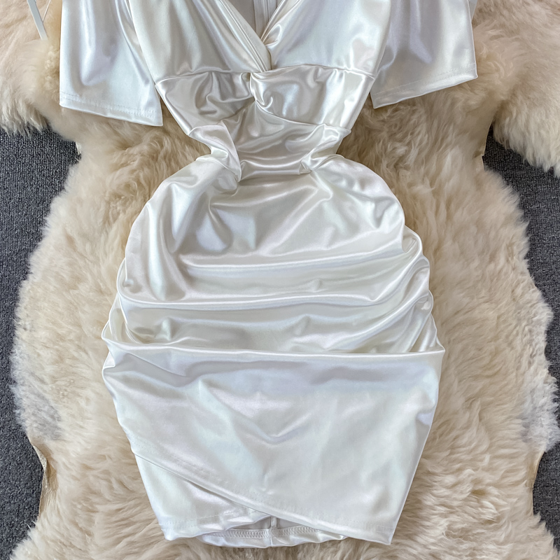 Sexy Women’s Mini Dress Summer White/Black V-Neck High Waist Draped Party Bodycon Vestidos Female Slim Sheath Short Robe