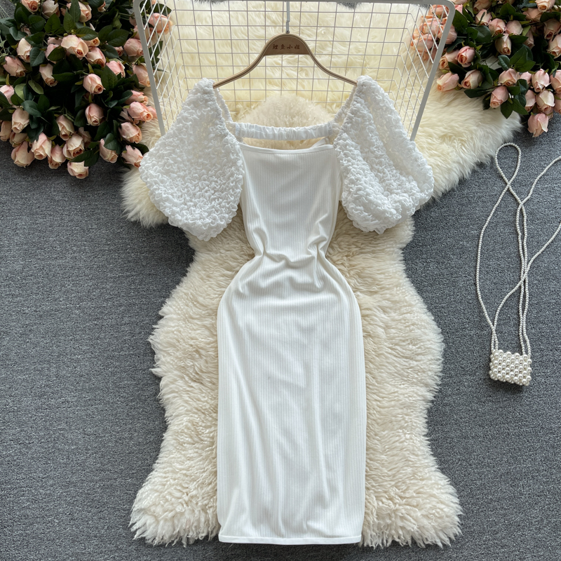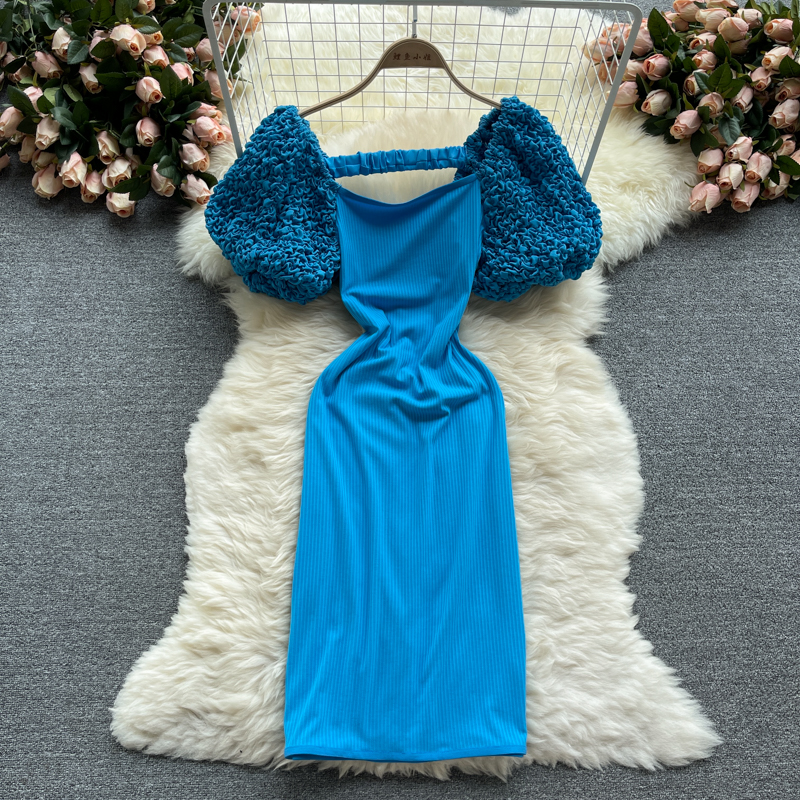 Cheap Dresses, Buy Quality Women’s Clothing Directly from China Suppliers:Sexy Square Collar Knitted Patchwork Bodycon Mini Dress For Women Summer Elegant Puff Short Sleeve Robe Female Vestidos New