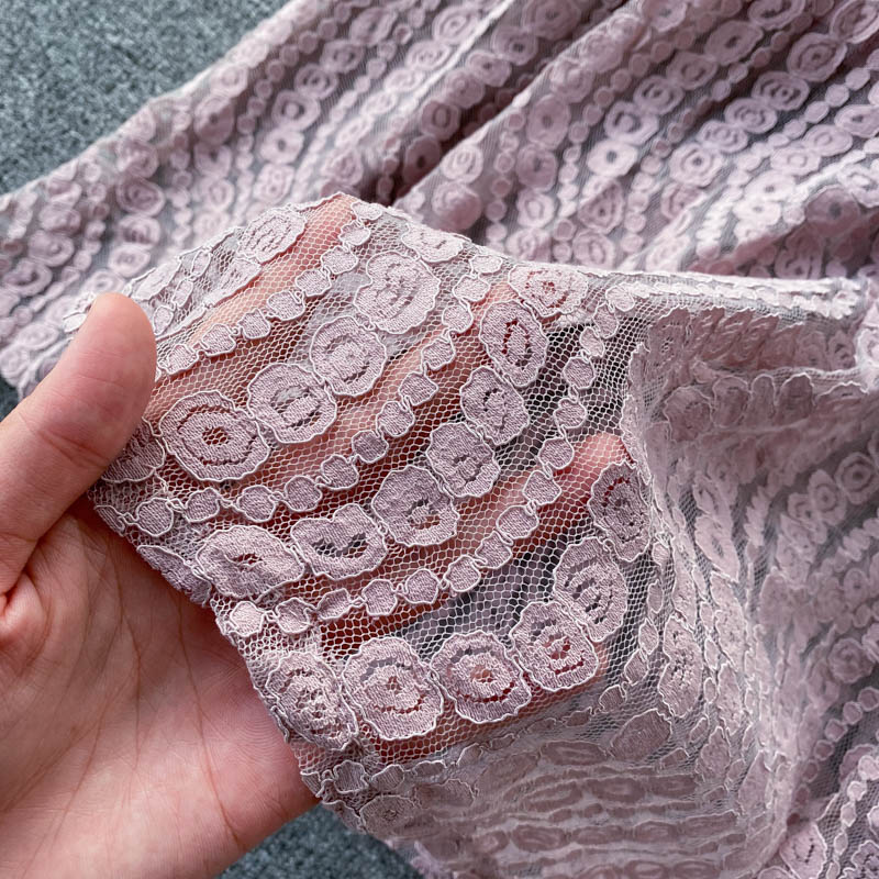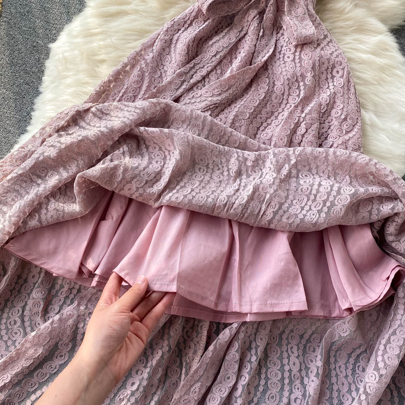 Vintage Blue/Pink Lace Long Dress Women Summer Elegant V-Neck Short Sleeve High Waist Vestidos Casual Party Maxi Robe New