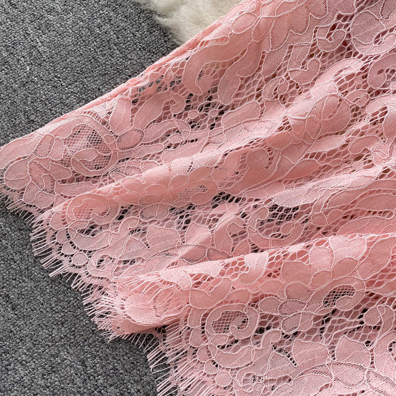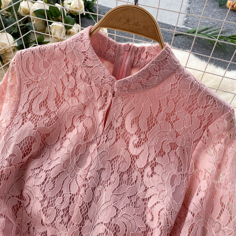 Vintage Blue/Pink Lace Dress Women Spring Autumn Flare Long Sleeve High Waist Sweet Vestidos Casual Female Robe New Fashion