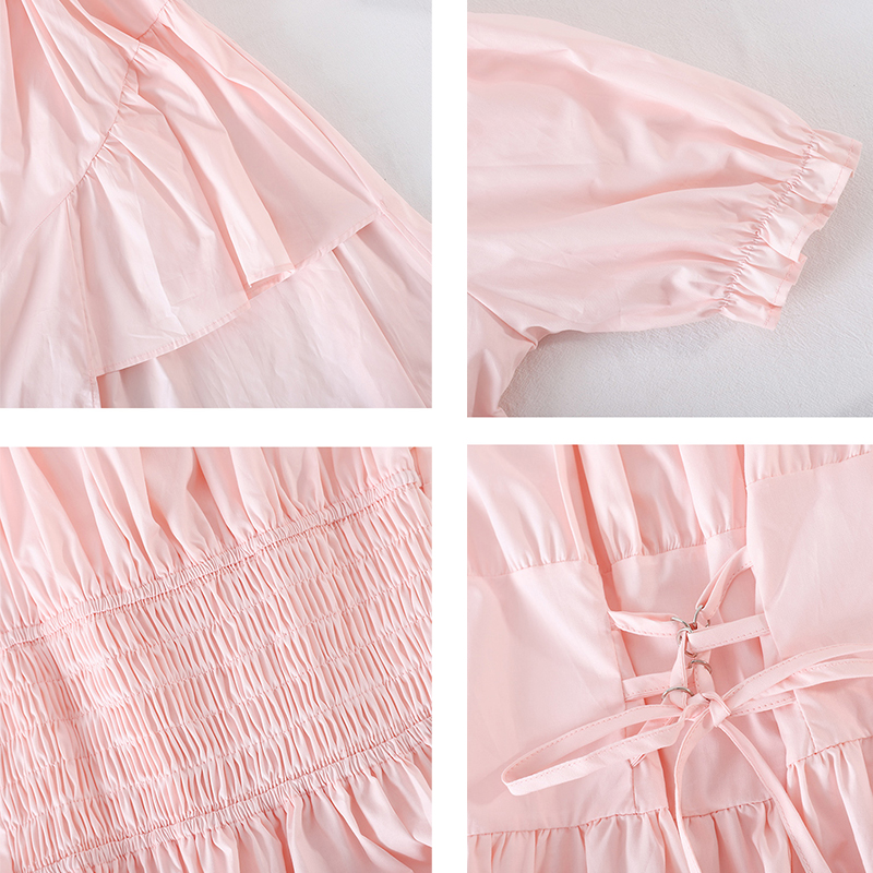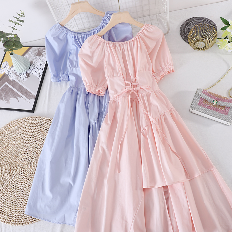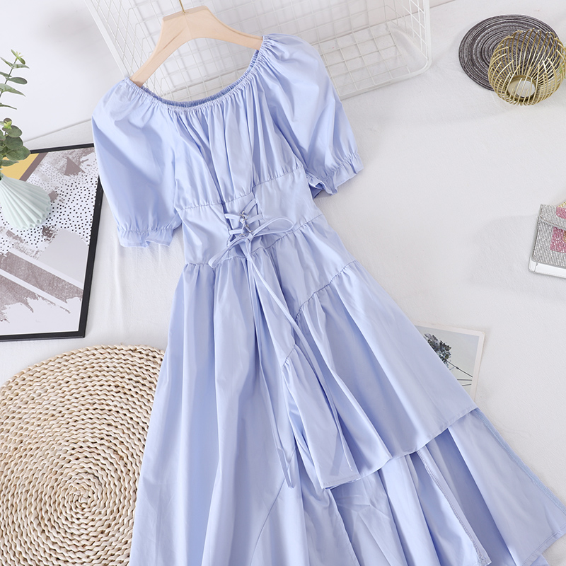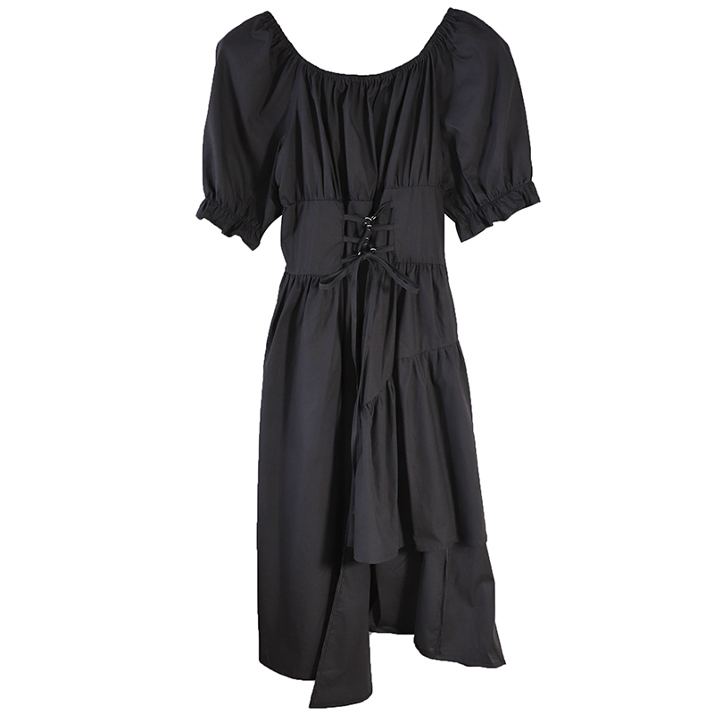 Blue/White/Black/Pink Drawstring Irregular Dress Women Vintage Draped Vestidos Female Vacation Beach Party Robe New Fashion
