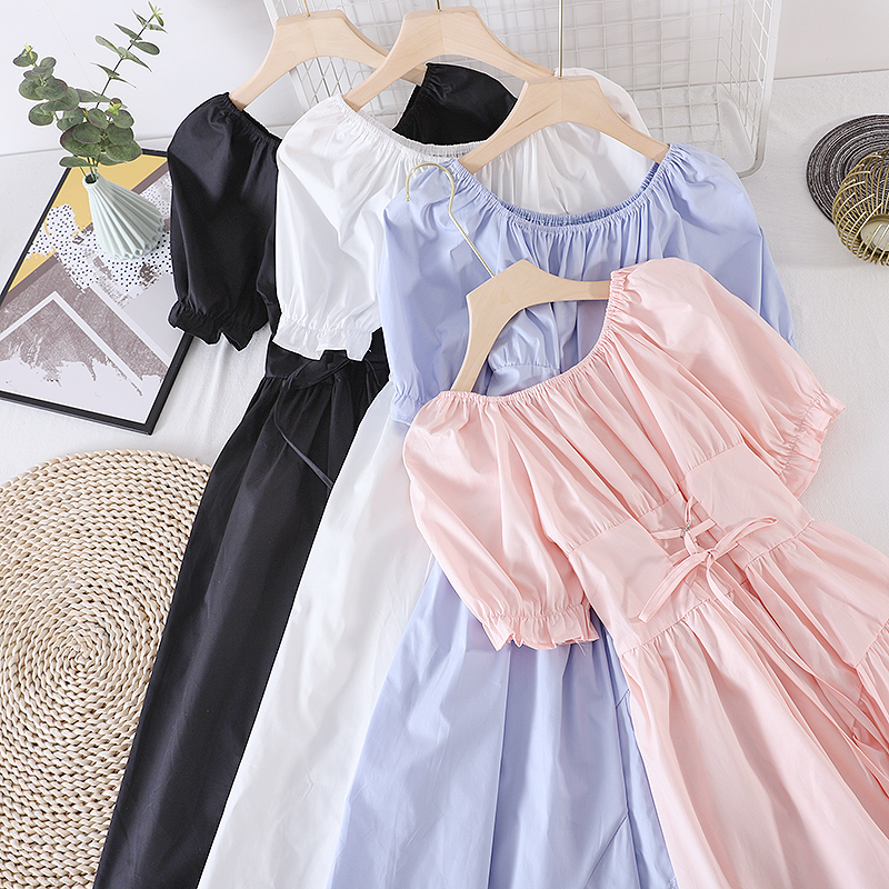Korean Chic Women Hollow Out Midi Dress Women Short Sleeve Round Neck Sashes Dresses Female Big Swing Vestidos Fashion Fall