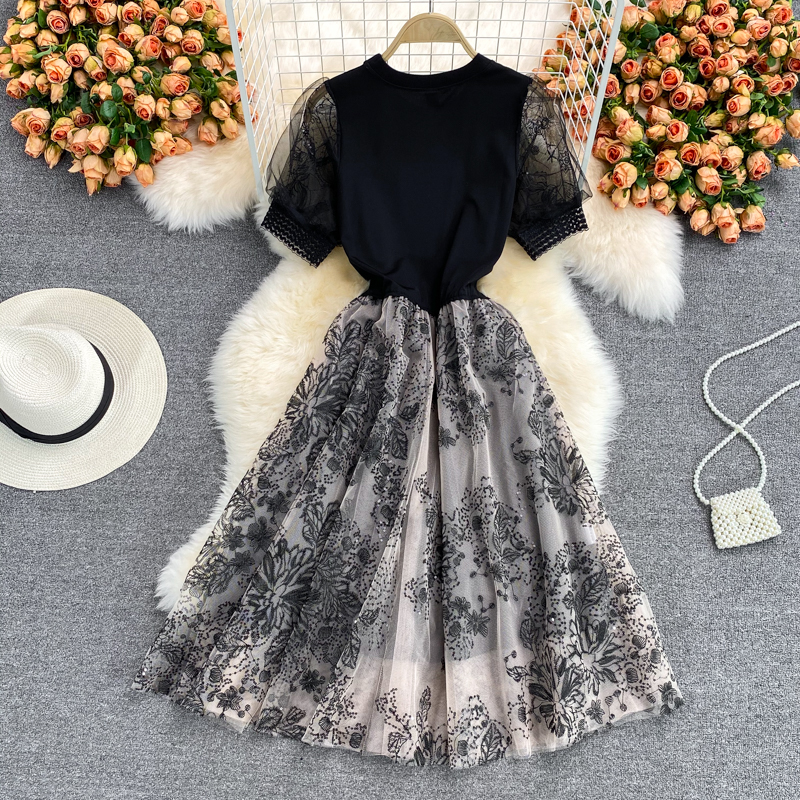 Cheap Dresses, Buy Quality Women’s Clothing Directly from China Suppliers:Vintage Black Sequins Embroidered Dress For Women Summer Elegant O Neck Mesh Patchwork Short Sleeve Party Vestidos Female Robe