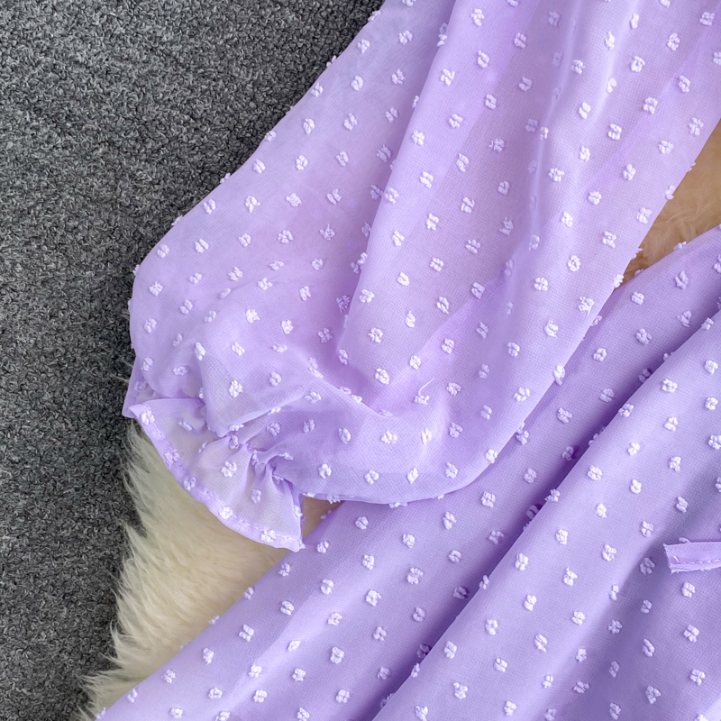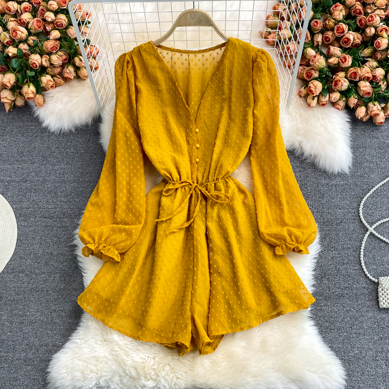 Purple/Yellow/White Polka Dot Chiffon Romper Women Summer Sexy Long Sleeve Single Breasted High Waist Wide Leg Casual Playsuits