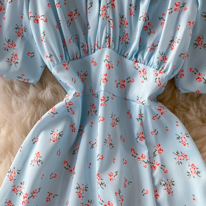 Cheap Dresses, Buy Quality Women’s Clothing Directly from China Suppliers:Summer Vintage Floral Long Dress Women Halter Square Collar Puff Short Sleeve High Waist Split Vestidos Casual Maxi Robe