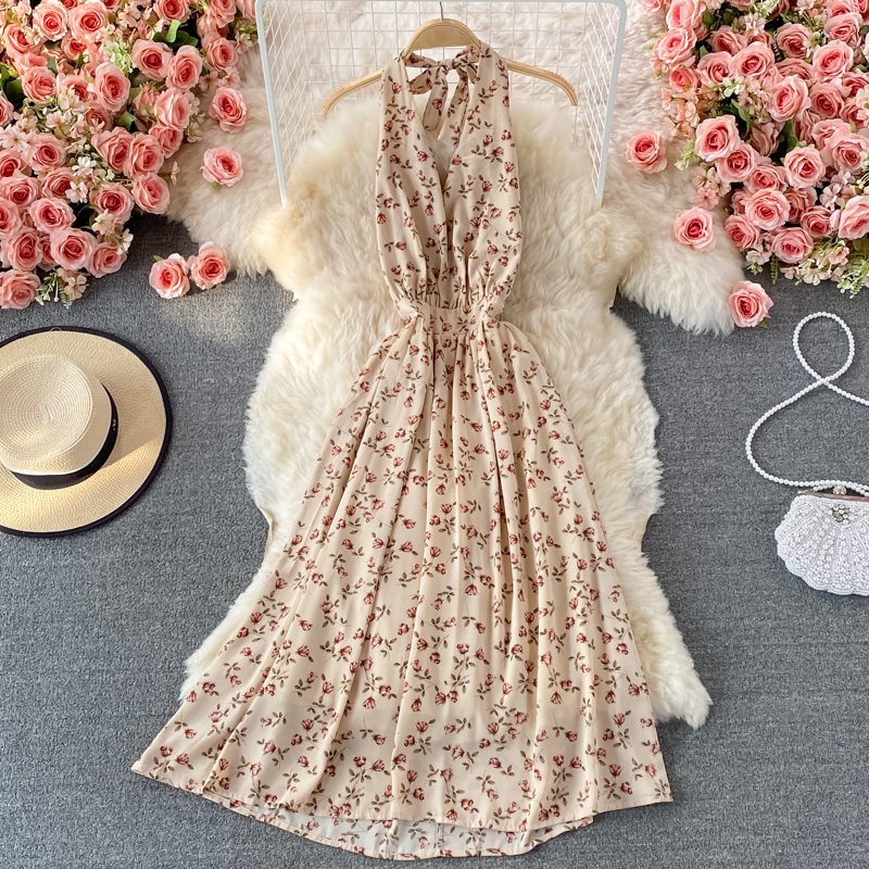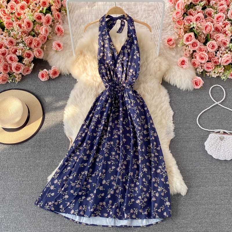 Cheap Dresses, Buy Quality Women’s Clothing Directly from China Suppliers:Summer Sexy Halter Sleeveless High Waist Print Knee Length Dress Women Casual Open Back A Line Vestidos Female Vintage Robe