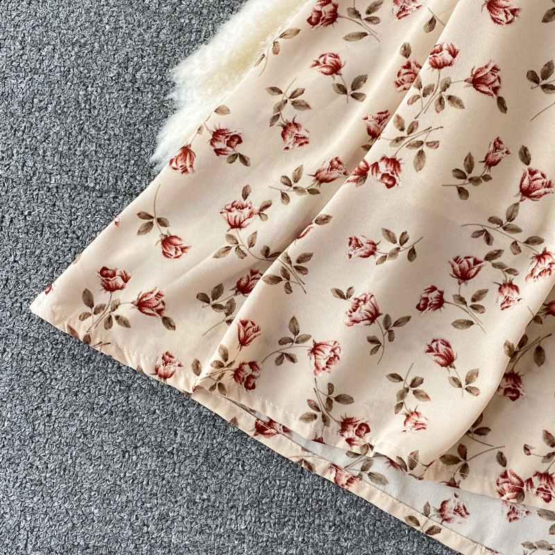 Bohemian Flower Printed Midi Skirt Women Autumn Elegant High Elastic Waist Faldas Female Vacation Beach Pleated Saias New