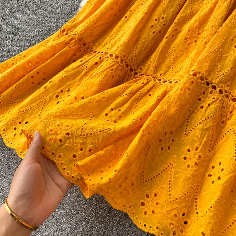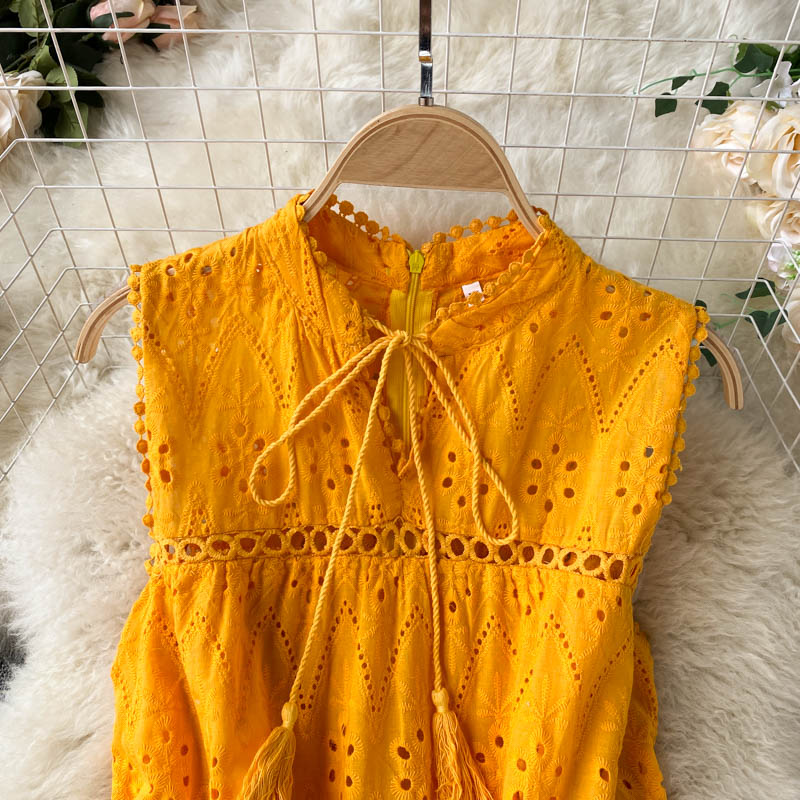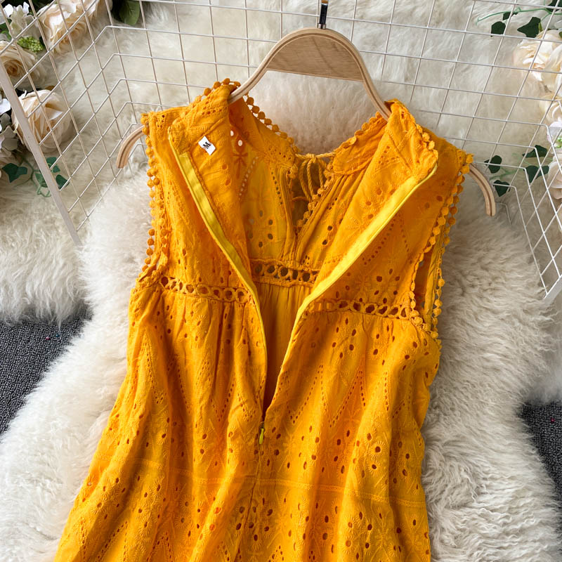 Summer Bohemian Purple/Blue/Yellow Hollow Out Midi Dress For Women Sexy V-Neck Sleeveless Vacation Beach Robe Female New