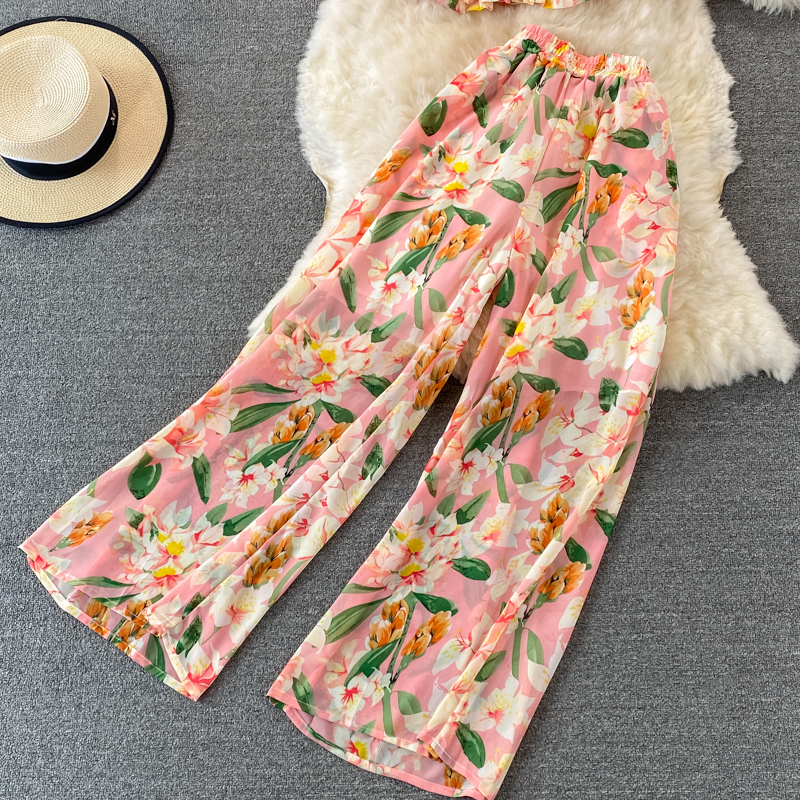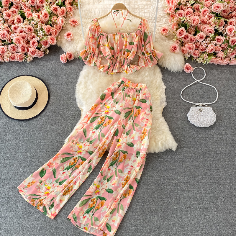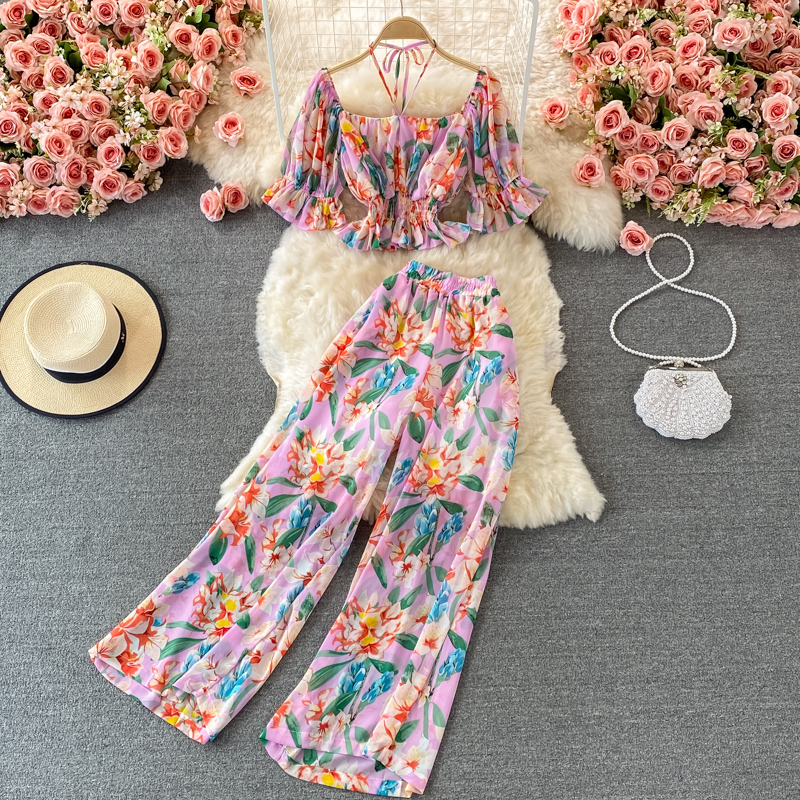 Cheap Pant Suits, Buy Quality Women’s Clothing Directly from China Suppliers:Bohemian Summer Floral Two Piece Set For Women Sexy Square Collar Flare Short Sleeve Tops + Loose Wide Leg Pants Beach Suit