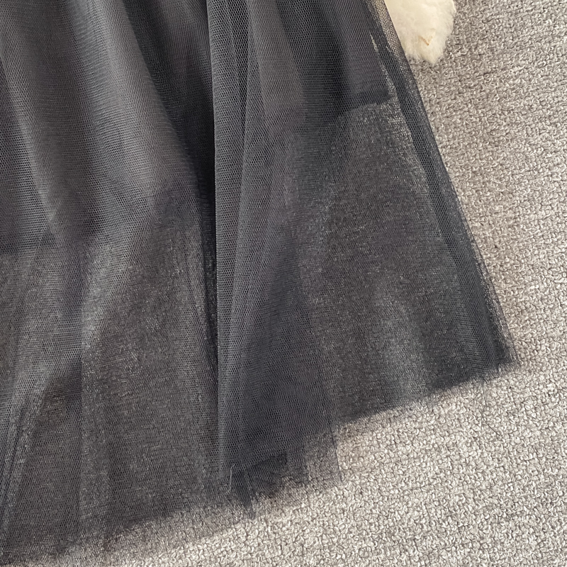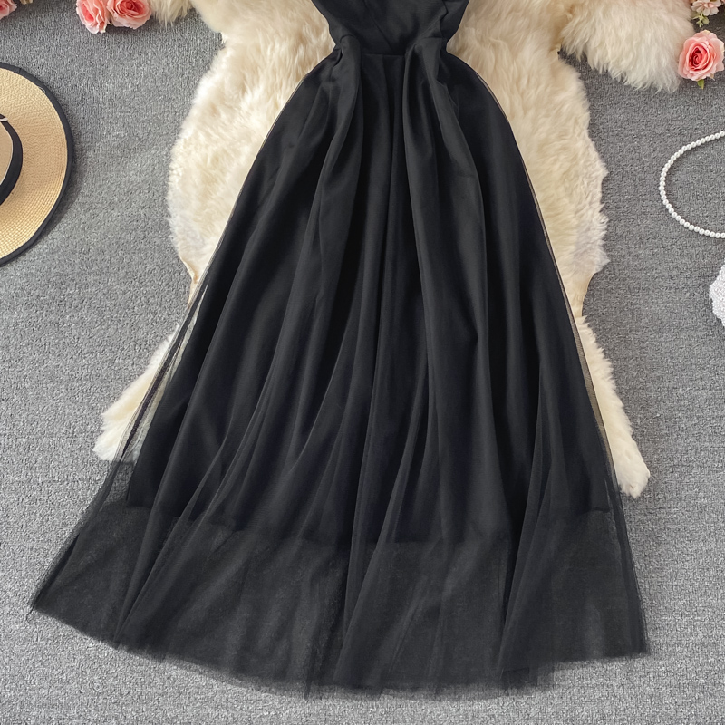 Summer Black/Red Mesh Patchwork Party Dress Women Vintage Short Puff Sleeve High Waist A-Line Casual Vestidos Female New