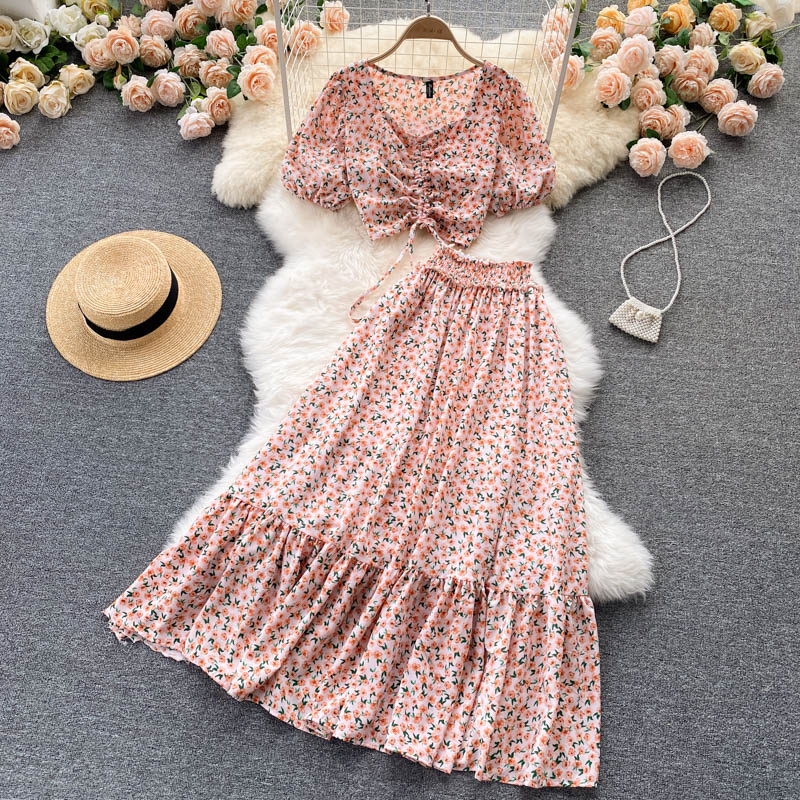Cheap Dress Suits, Buy Quality Women’s Clothing Directly from China Suppliers:Women Printed 2Pcs Set Summer Vintage Square Collar Drawstring Short Tops + High Waist A Line Long Skirt Female Two Piece Suit