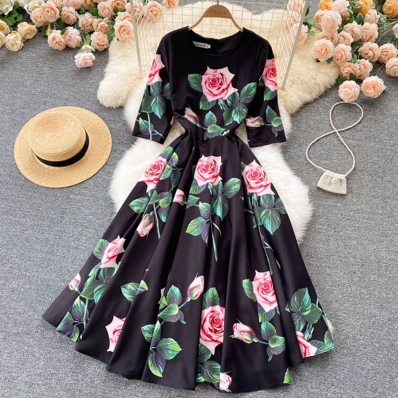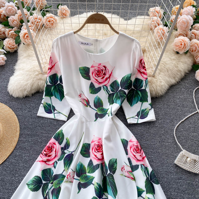 Cheap Dresses, Buy Quality Women’s Clothing Directly from China Suppliers:Summer Bohemian White Floral Midi Dress For Women Vintage O Neck High Waist A Line Party Robe Female Casual Vestidos New