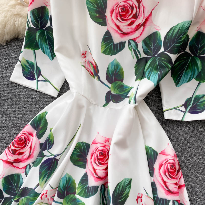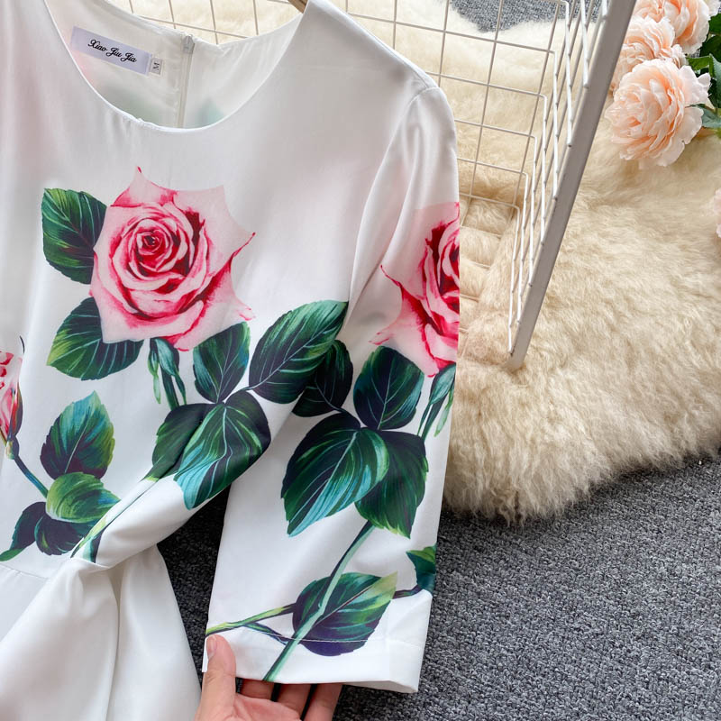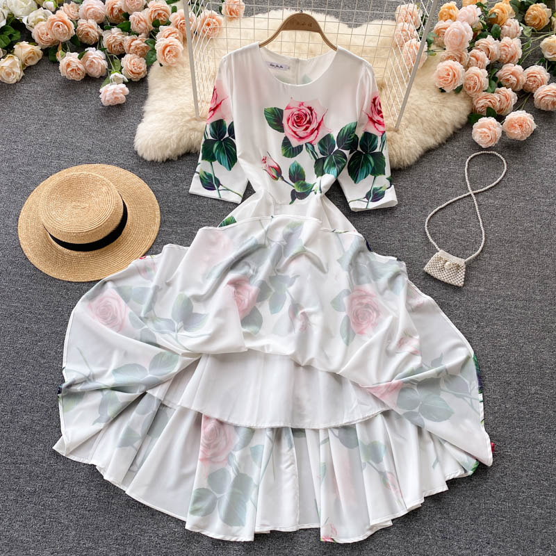 Summer Bohemian White Floral Midi Dress For Women Vintage O-Neck High Waist A-Line Party Robe Female Casual Vestidos New