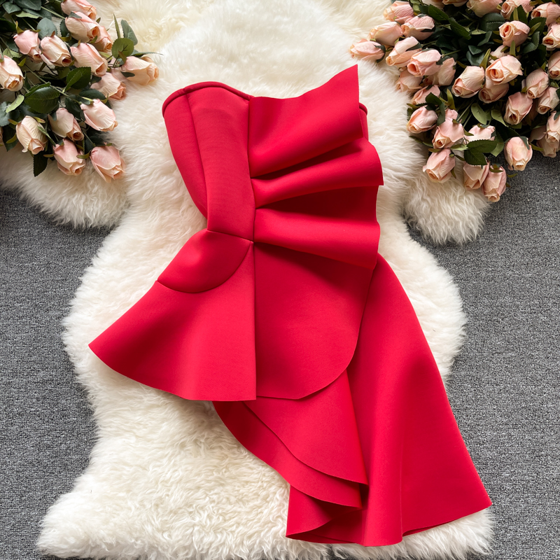 Summer Sexy Slash Neck Irregular Ruffle Blouse For Women Red/White/Yellow Strapless Party Shirt Female Casual Tops Fashion