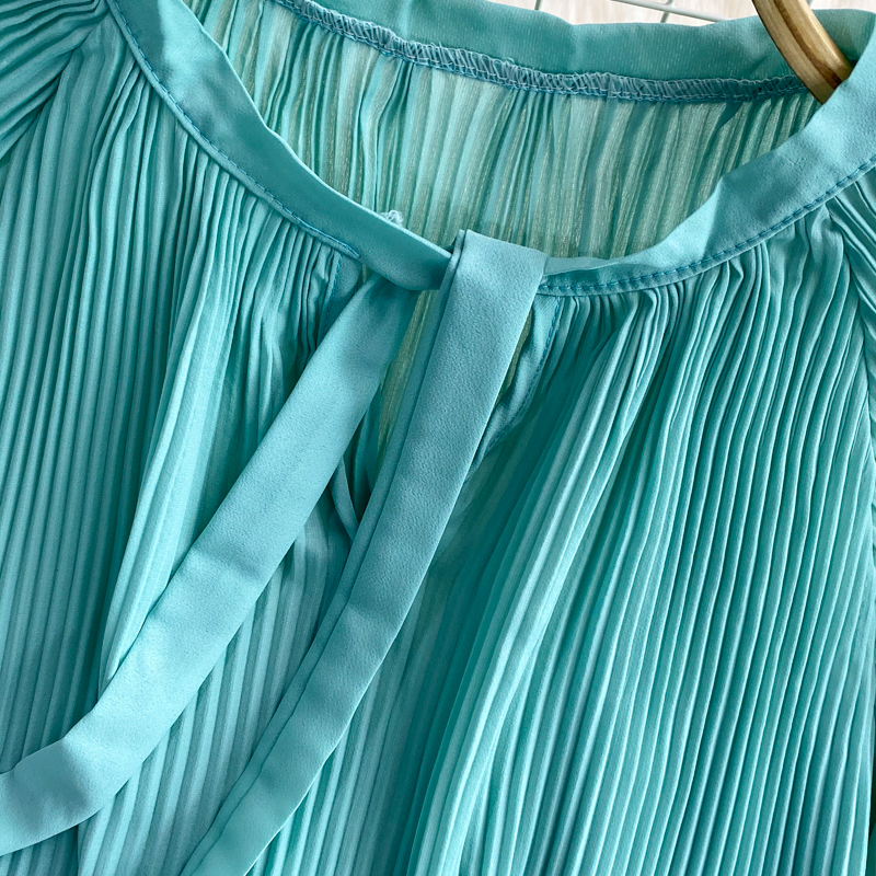 Cheap Blouse, Buy Quality Women’s Clothing Directly from China Suppliers:Women Draped Chiffon Blouse Spring Autumn Casual Bow Collar Puff Long Sleeve Pleated Loose Tops Female White/Blue Shirt