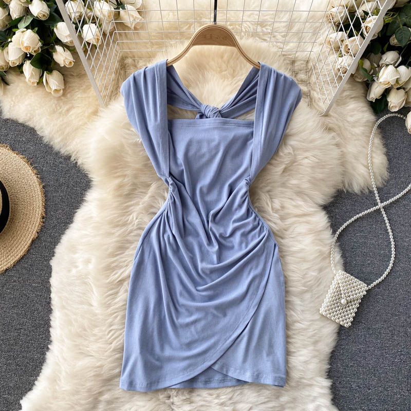 Sexy Bodycon Bandage Dress Women Blue/Pink Halter Sleeveless High Waist Mini Vestidos Vacation Beach Robe Female Summer New