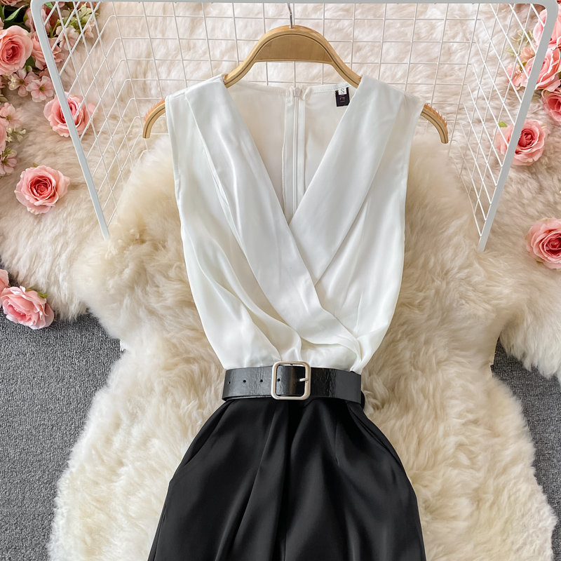 Women Black/White Patchwork Romper Office Ladies Sleeveless High Waist Wide Leg Jumpsuits Casual Female Playsuits OL New