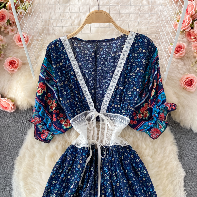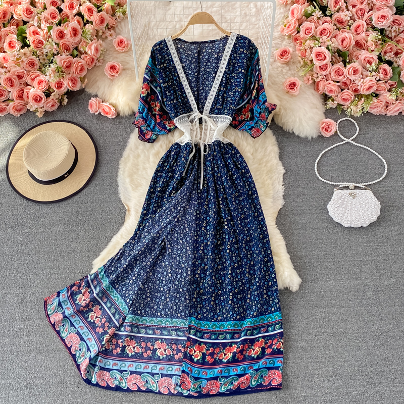 Cheap Dresses, Buy Quality Women’s Clothing Directly from China Suppliers:Summer Bohemian Floral Chiffon Long Dress For Women Sexy V Neck Short Sleeve Patchwork Chiffon Vestidos Lady Vacation Beach Robe