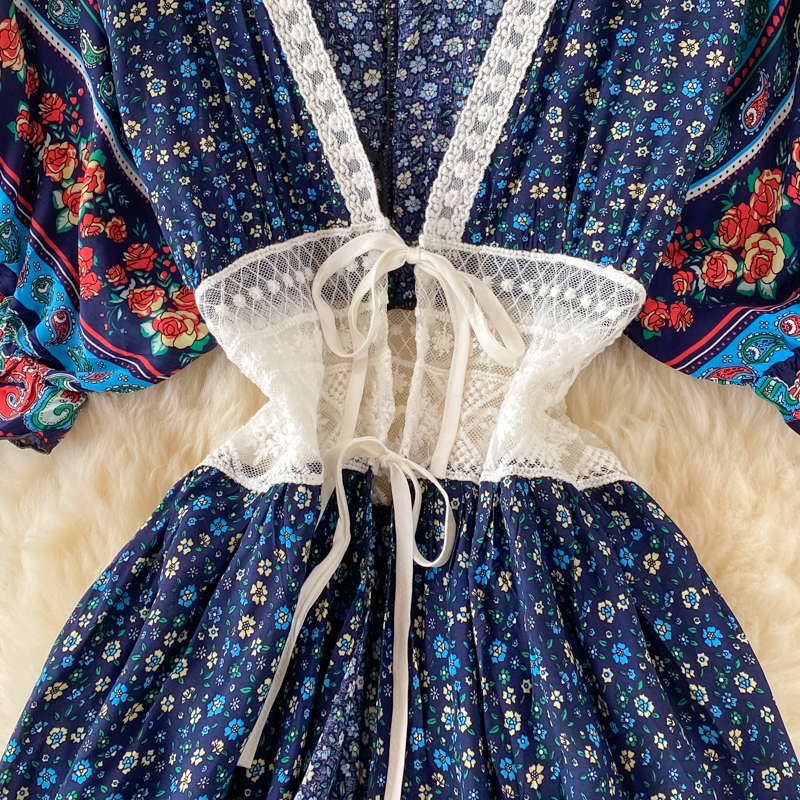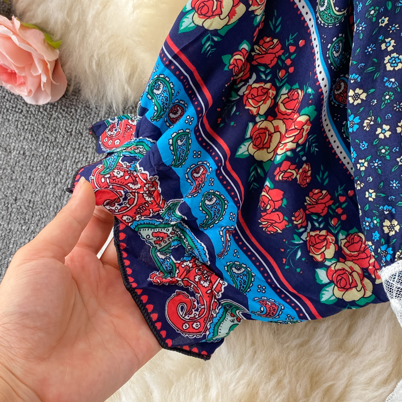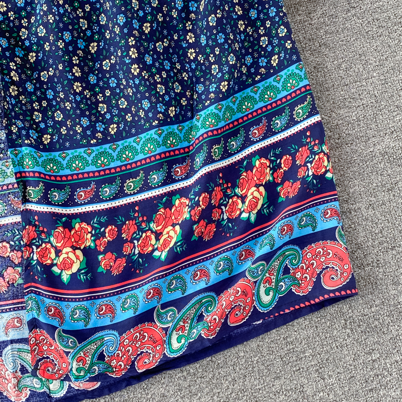 Summer Bohemian Floral Chiffon Long Dress For Women Sexy V-Neck Short Sleeve Patchwork Chiffon Vestidos Lady Vacation Beach Robe