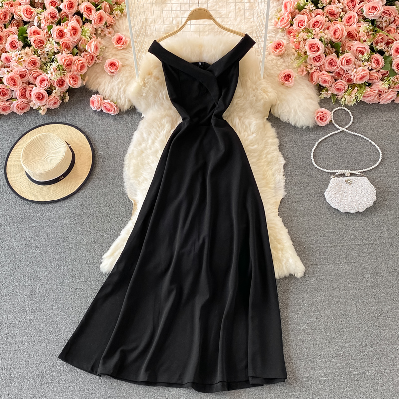 Black/Red Sexy V-Neck Party Long Dress For Women Elegant Sleeveless High Waist Big Swing Vestidos Summer Club Robe New