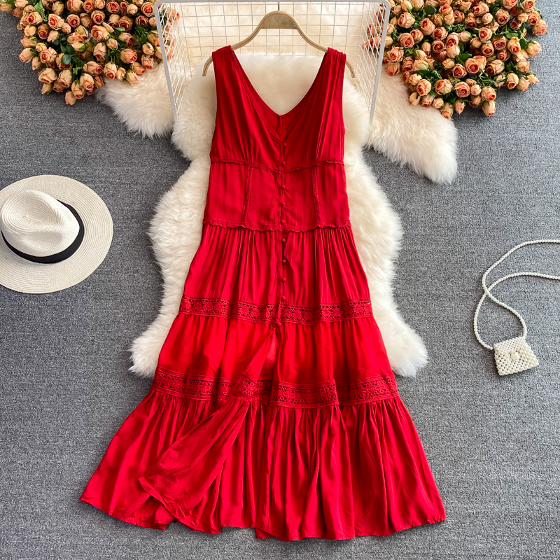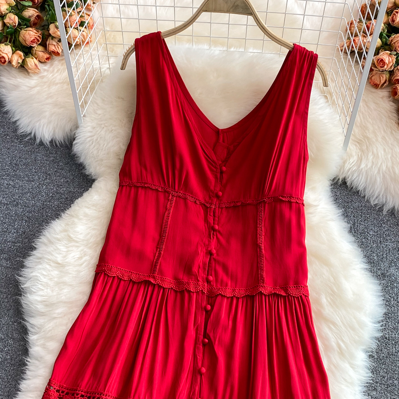 Cheap Dresses, Buy Quality Women’s Clothing Directly from China Suppliers:Summer Indie Folk Red Embroidered Midi Dress Sexy V Neck Sleeveless Hollow Out Beach Vestidos Casual A Line Robe Fashion