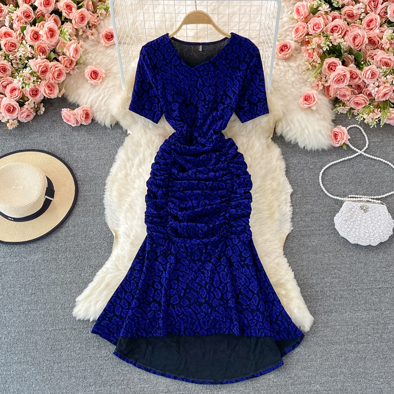 Cheap Dresses, Buy Quality Women’s Clothing Directly from China Suppliers:Summer Women Leopard Draped Midi Dress Sexy V Neck Short Sleeve High Waist Mermaid Bodycon Vestidos Elegant Party Robe New