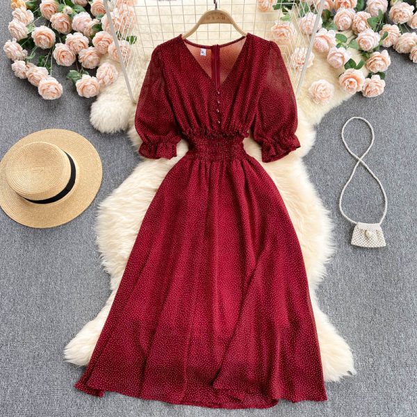 Holiday Women Chiffon Dress Summer Elegant Slash Neck Short Sleeve Ruffle A-line Casual Vintage Dresses For Female Vestidos