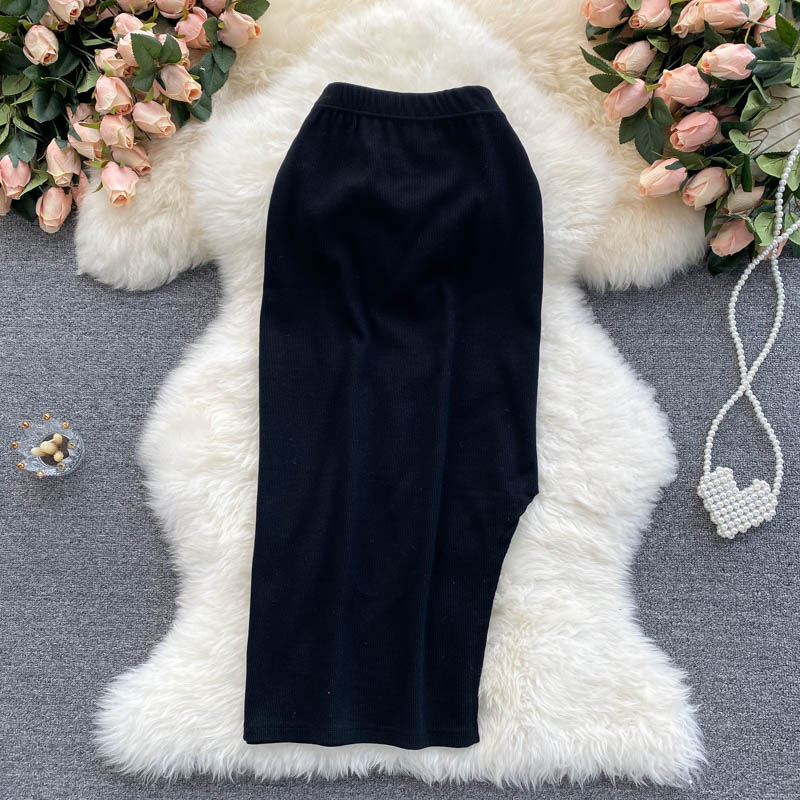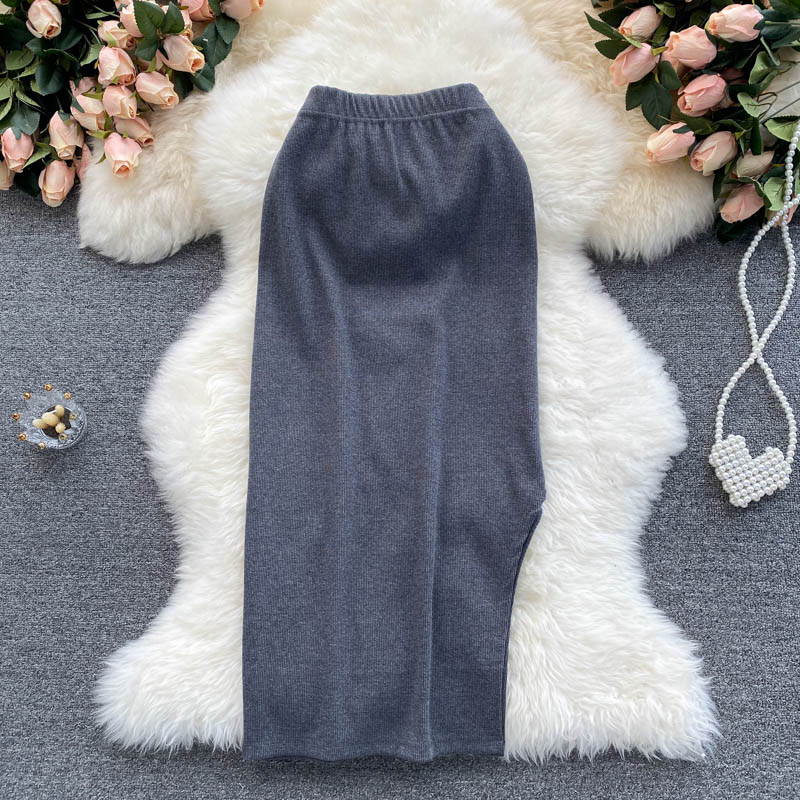 Sexy Knitted Bodycon Skirt Women Black/Gray High Elastic Waist Slim Pencil Saias Female Casual Faldas Summer New Fashion