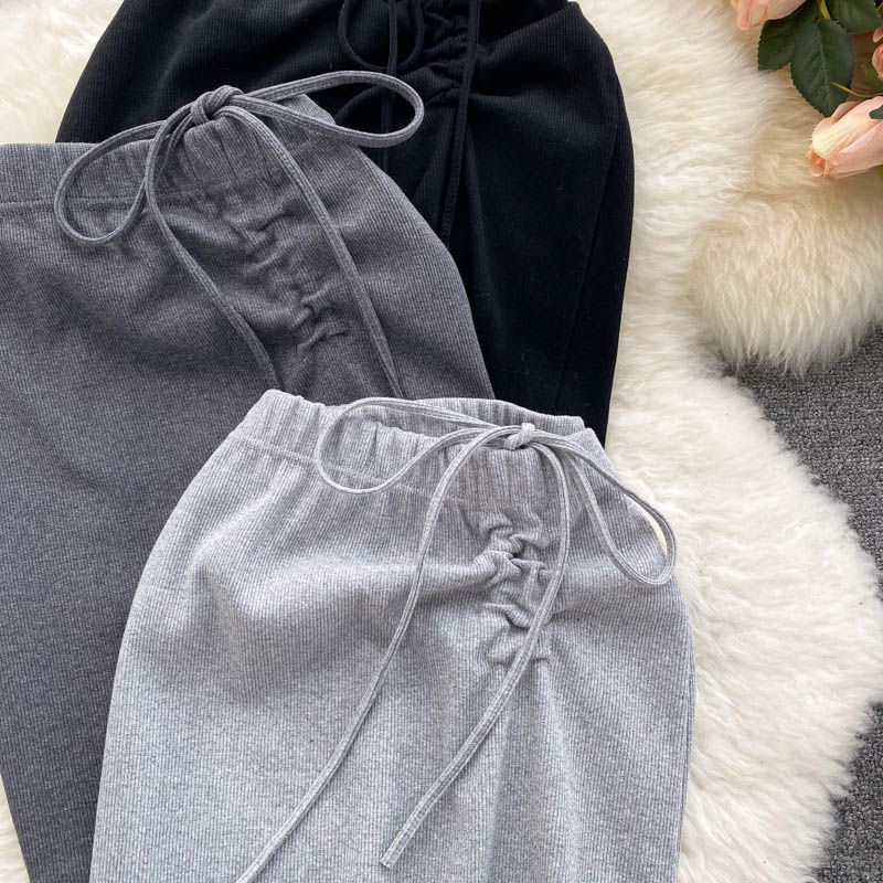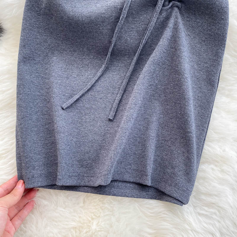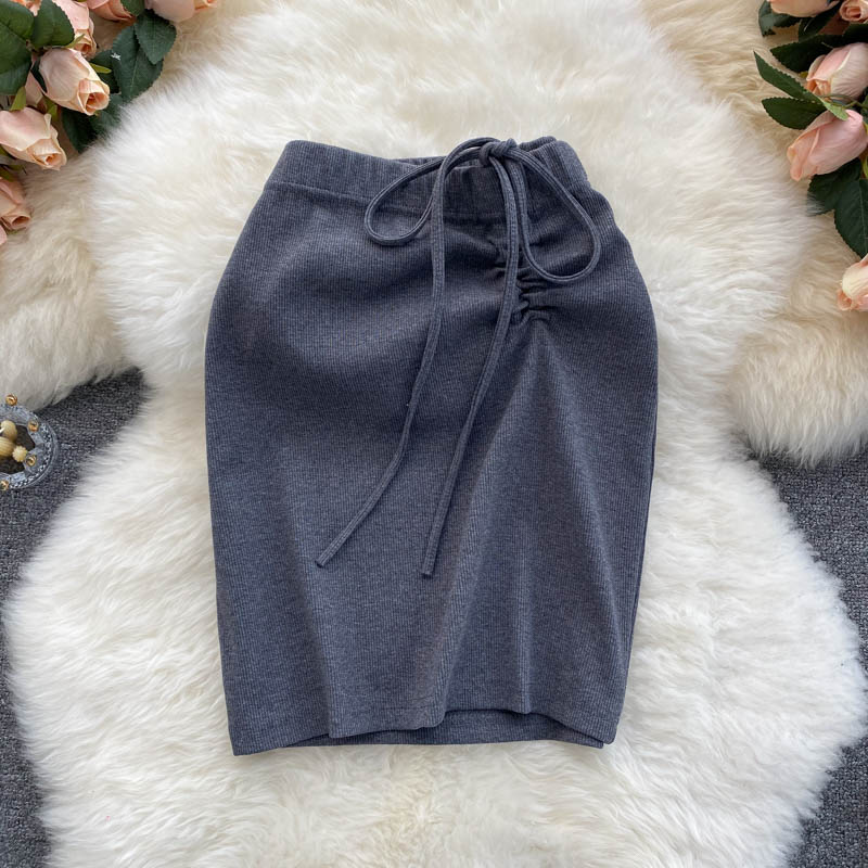 Black/Gray Sexy Drawstring Mini Skirt For Women High Waist Slim Pencil Faldas Summer Female Short Saias New Fashion
