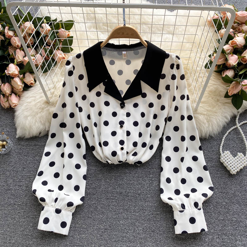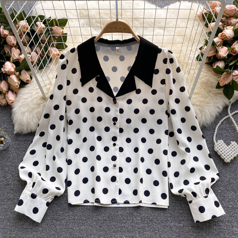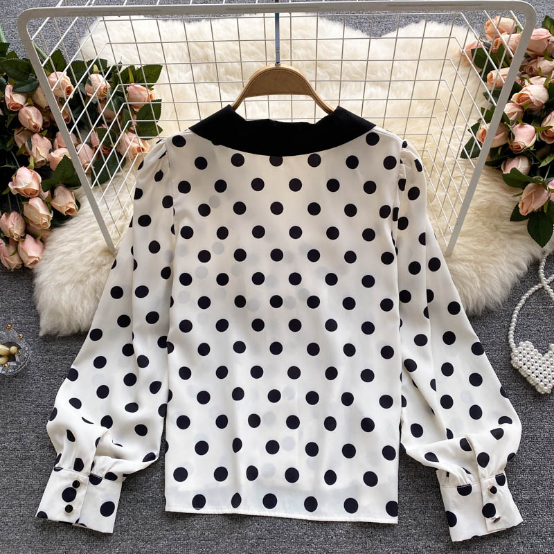 Cheap Shirt, Buy Quality Women’s Clothing Directly from China Suppliers:Autumn Office Lady White Polka Dot Blouse Women Elegant Turn Down Collar Long Sleeve Single Breasted Loose Casual Shirts