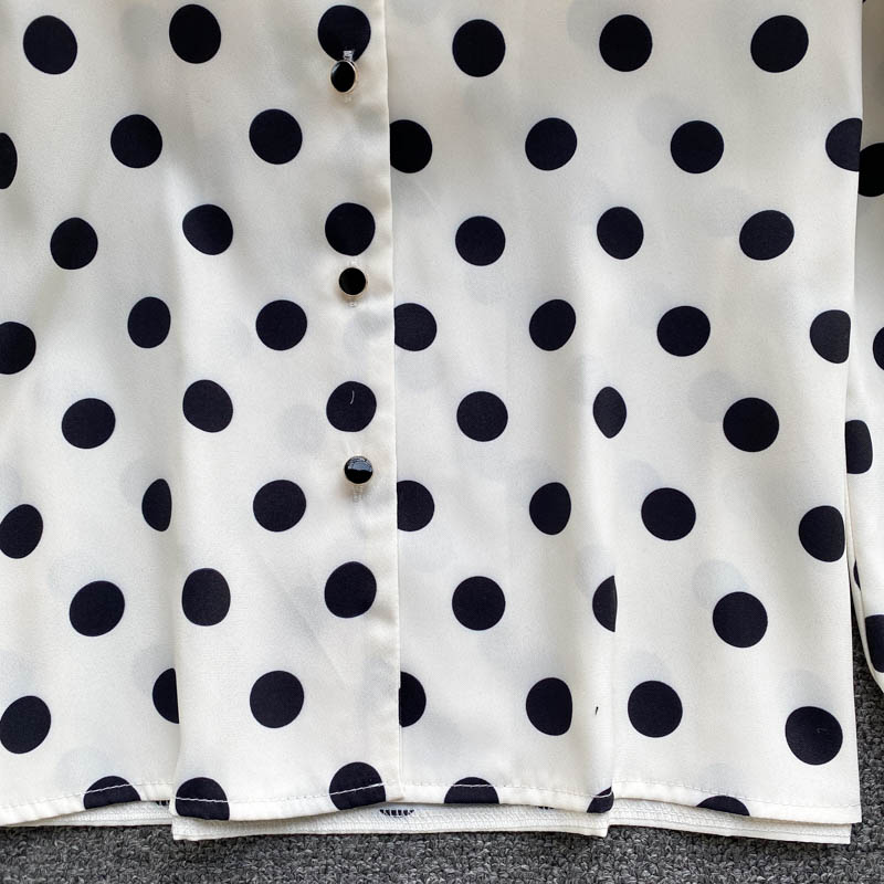 Autumn Office Lady White Polka Dot Blouse Women Elegant Turn-Down Collar Long Sleeve Single Breasted Loose Casual Shirts
