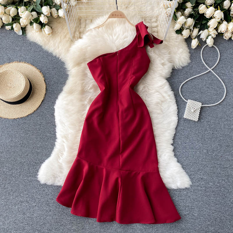 Cheap Dresses, Buy Quality Women’s Clothing Directly from China Suppliers:Summer Women Sexy Red Irregular Party Dress Elegant Diagonal Collar Ruffle Spaghetti Strap Robe Female High Waist Vestidos