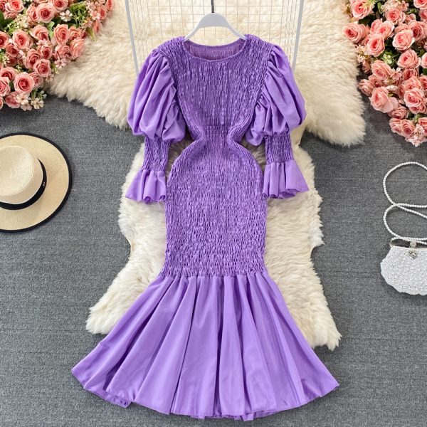 Black/Khaki/Gray Draped Midi Dress Autumn Vintage O-Neck Long Sleeve High Waist Split Bodycon Vestidos Lady New Fashion