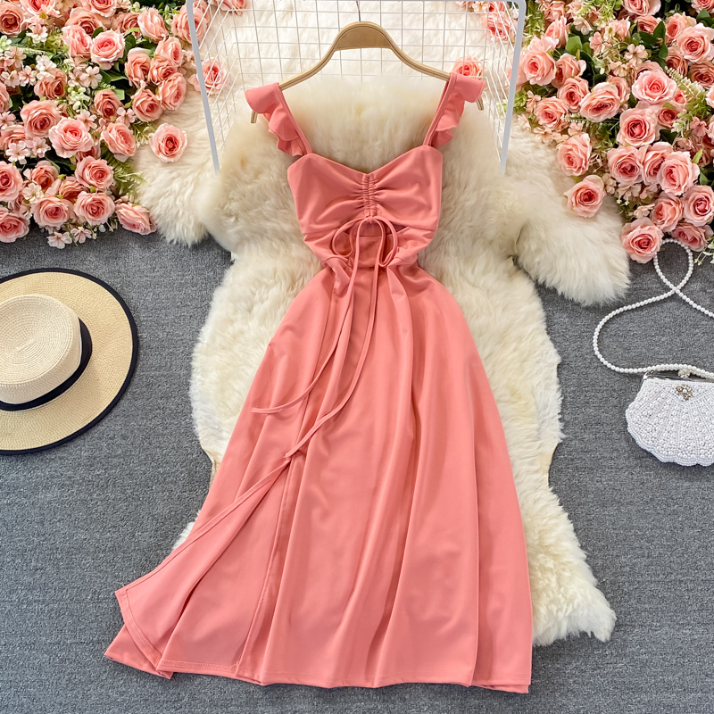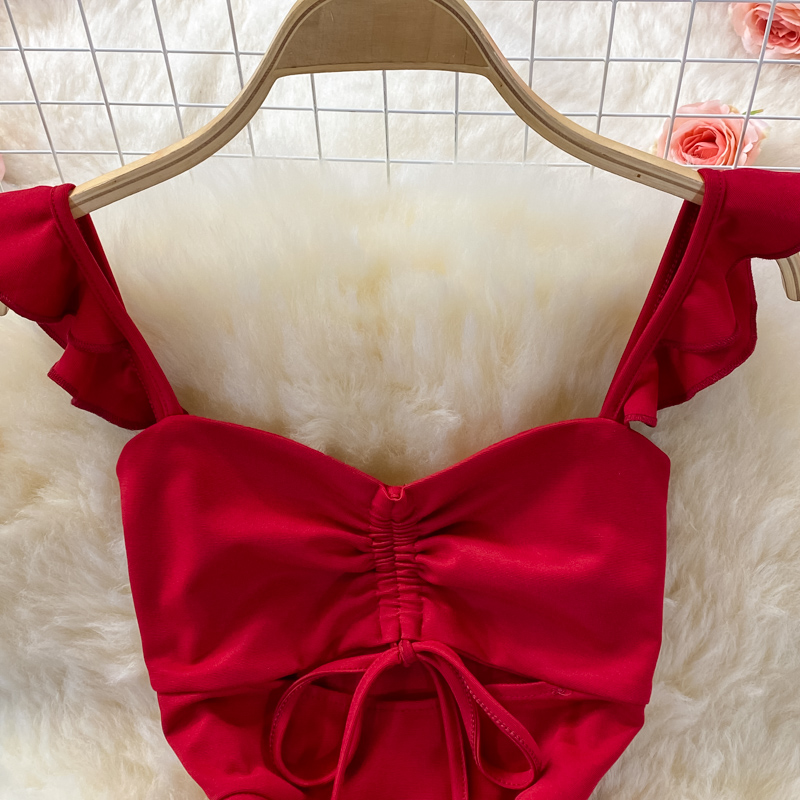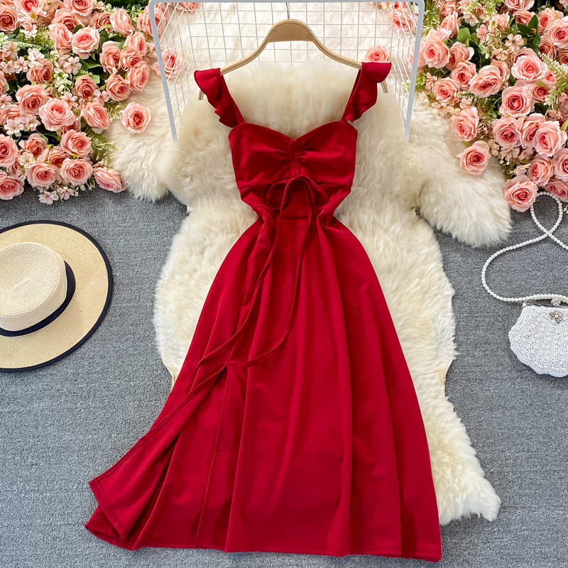 Cheap Dresses, Buy Quality Women’s Clothing Directly from China Suppliers:Summer Sexy Red/Pink/Black Spaghetti Strap Midi Dress Women Vacation Beach Hollow Out Party Robe Female Vestidos New
