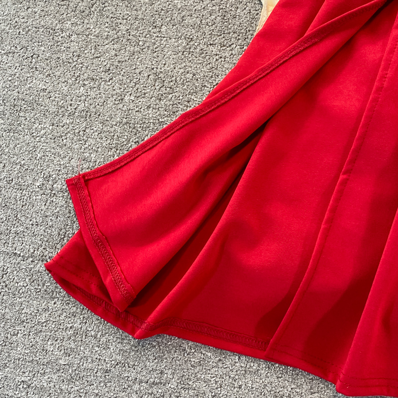Summer Black/Red Mesh Patchwork Party Dress Women Vintage Short Puff Sleeve High Waist A-Line Casual Vestidos Female New