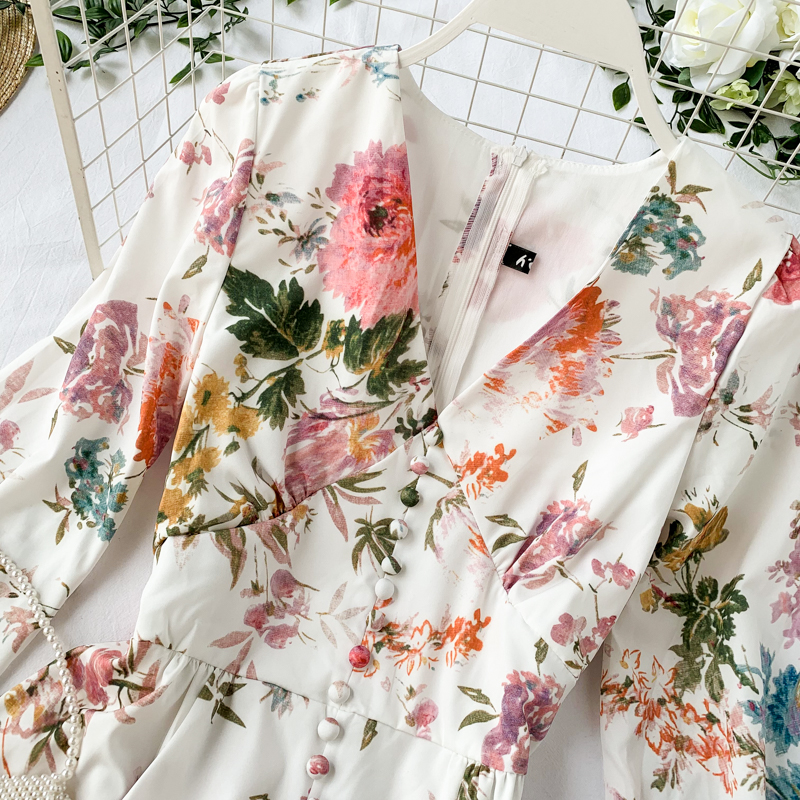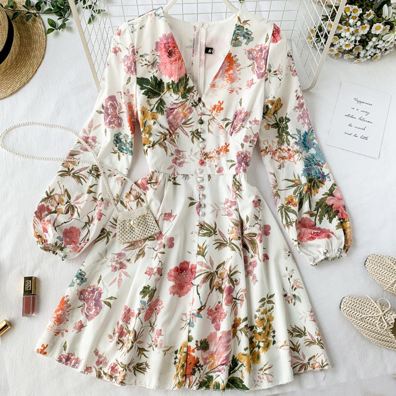 Cheap Dresses, Buy Quality Women’s Clothing Directly from China Suppliers:Bohemian Summer Beach Women Mini Dress Sexy V Neck Long Sleeve Single Breasted White Print Dresses For Female Fashion Vestidos