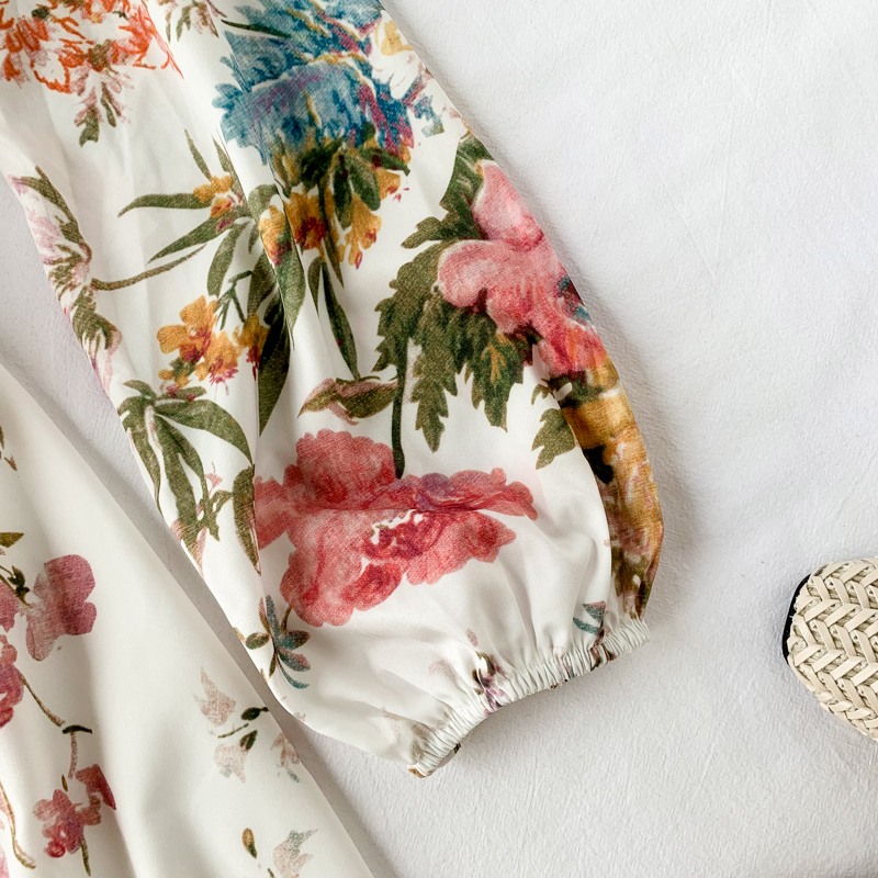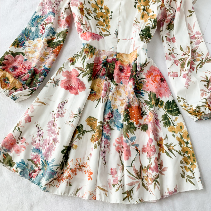 Bohemian Summer Beach Women Mini Dress Sexy V-Neck Long Sleeve Single Breasted White Print Dresses For Female Fashion Vestidos