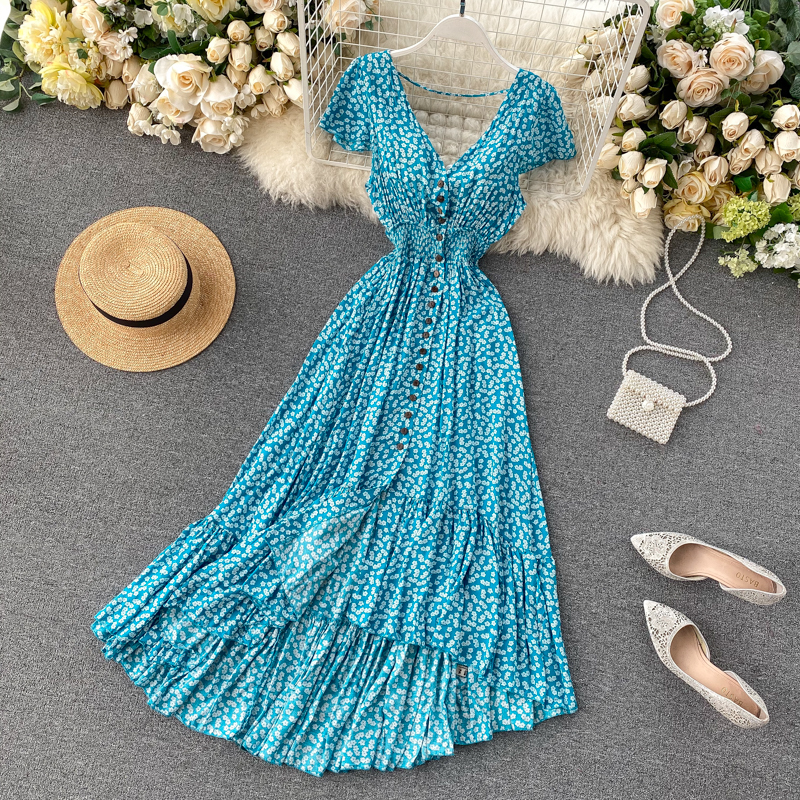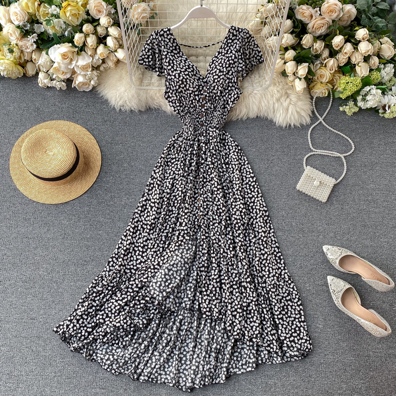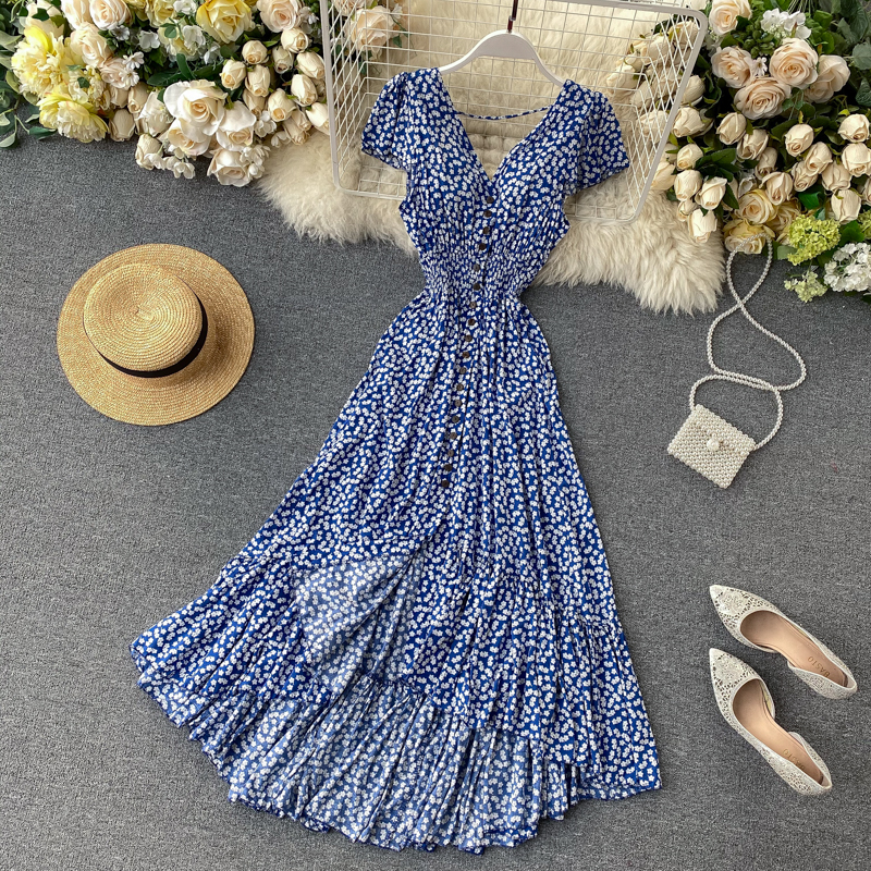 Cheap Dresses, Buy Quality Women’s Clothing Directly from China Suppliers:Bohemian Summer Women Floral Print Dress Sexy V neck Single Breasted High Waist Irregular Ruffle Dress Vestidos