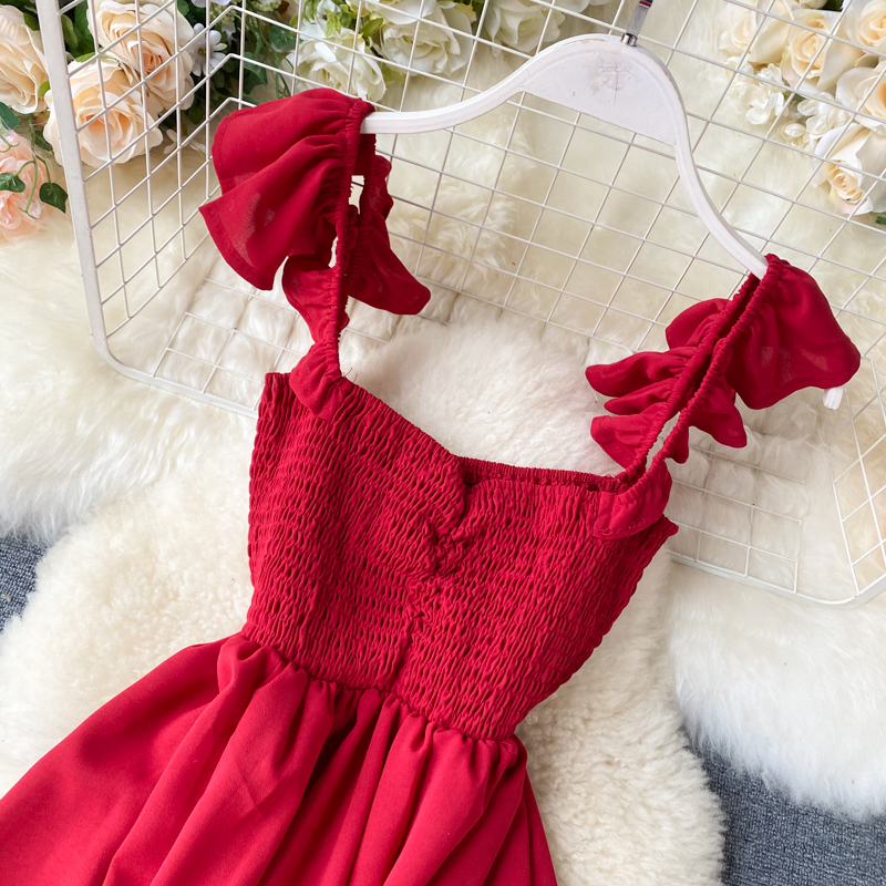 Summer Sexy Red Irregular Party Dress Women Vintage Slash Neck Sleeveless High Waist Ruffle Vestidos Female Casual Robe New